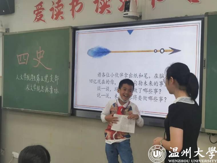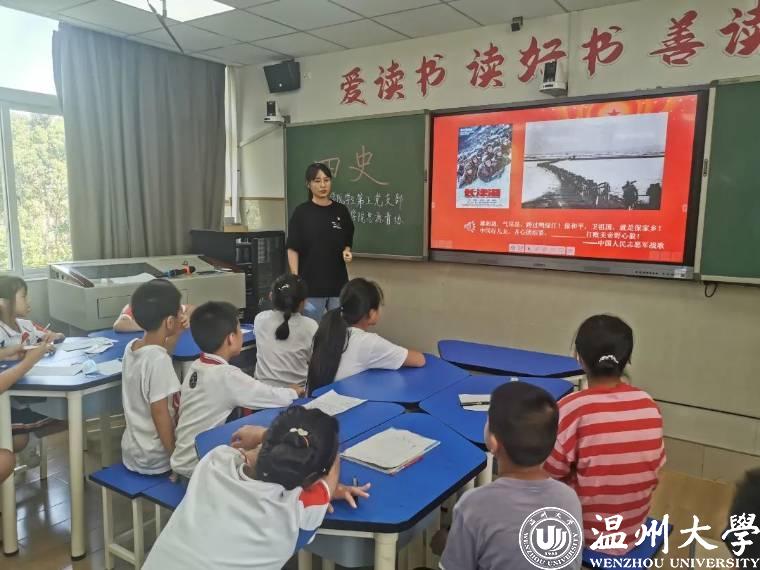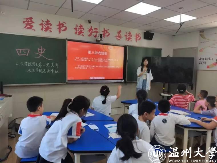 习近平总书记曾指出:“历史是最好的教科书。学习党史、国史,是我们坚持和发展中国特色社会主义、把党和国家各项事业继续推向前进的必修课。”在党的二十大即将召开之际,为全面贯彻落实党的教育方针,培育和践行社会主义核心价值观,近日,吃瓜网 学生第五党支部携手温大人文思源青协,前往温州市丽岙华侨小学进行党史知识宣讲活动。