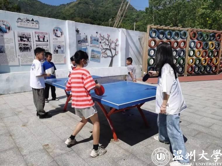 课堂学习环节结束,李婷同志紧接着主持游戏环节,带领孩子们走出教室,走向操场。活泼的孩子们情绪高涨,兴味浓厚,在志愿者的陪伴下,玩起乒乓球和“斗鸡”游戏,校园中顿时充满了孩子们的欢声笑语。