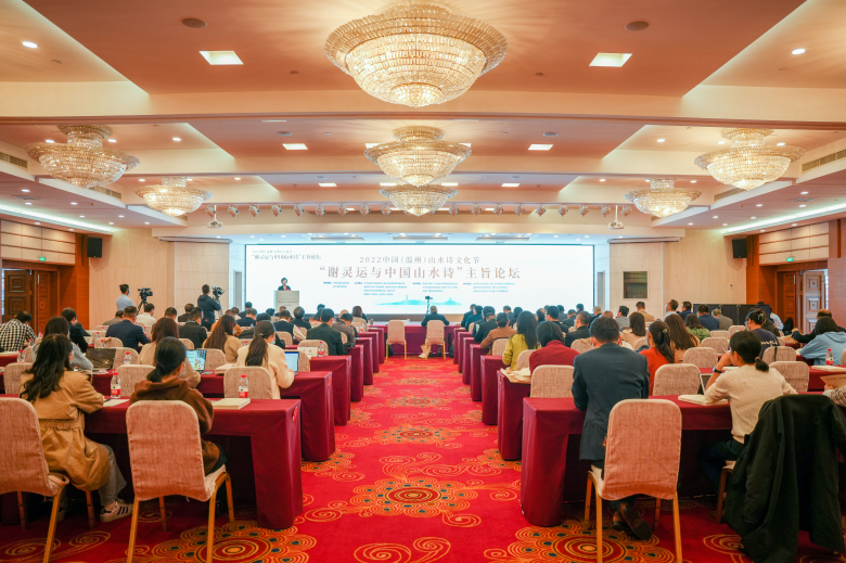 11月4日上午,作为2022中国(温州)山水诗文化节首场活动,“谢灵运与中国山水诗”主旨论坛在温州市人民大会堂举行。论坛采用线上线下同步进行,来自海内外50余位专家学者受邀与会,10位学者进行了精彩的主旨发言,从不同角度探讨中国山水诗文化。