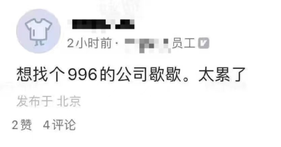 “加班到晚上八点,第二天被老板说下班太早,工作不饱和。”