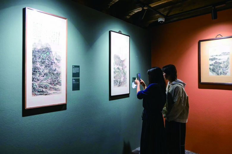 从观众的反馈来看,这样的背景确实让人眼前一亮,几乎每一个进门的观众,都会在此打卡拍照。此外,楼上的回廊、作品与装置的摆设等多处都是特意布置的“打卡点”,吸引了许多年轻人拍照,而这样的展陈形式也成了此次展览的一大亮点。