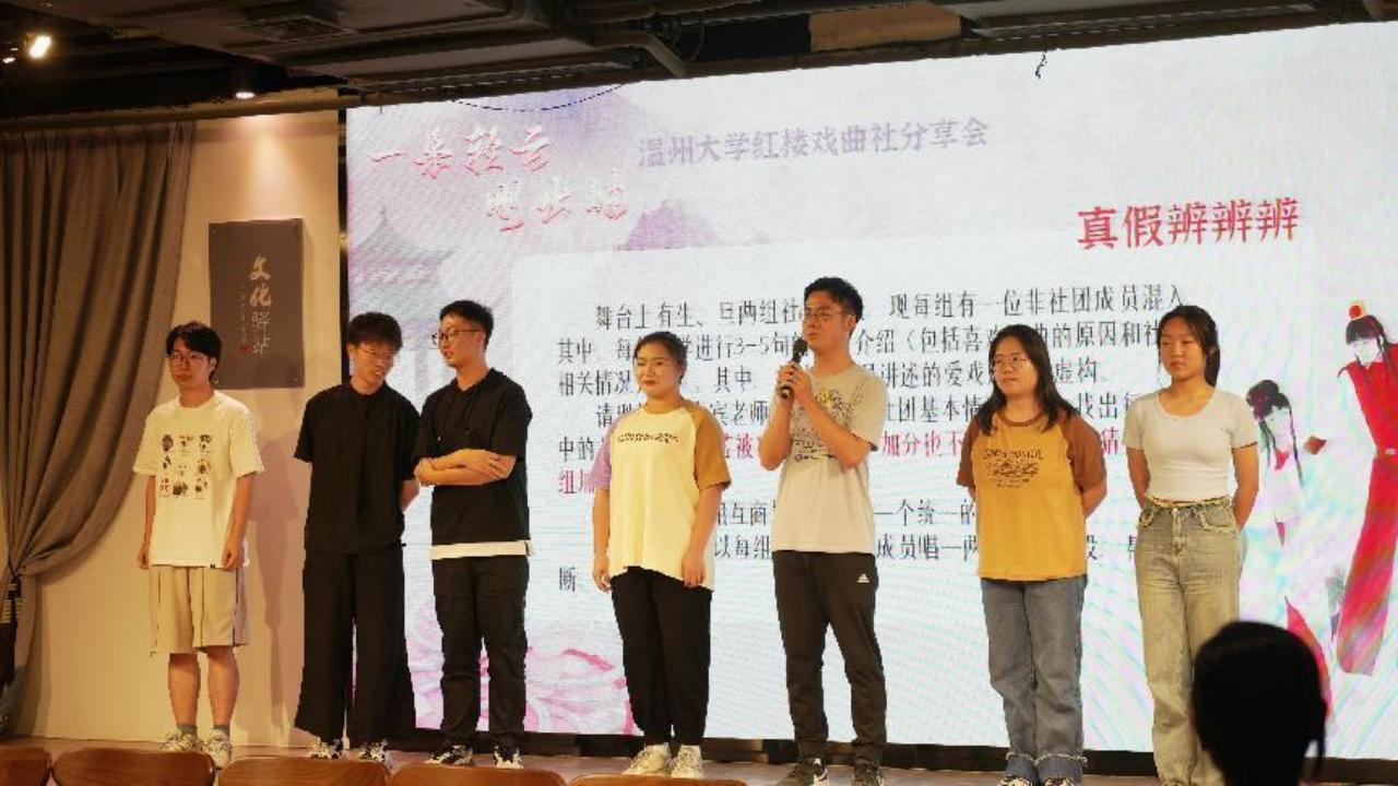 你听过越剧版唐诗《望庐山瀑布》吗?你玩过真假社员版“谁是卧底”吗?PK大擂台版“梨园知识”竞答,了解一下!近日,吃瓜网 红楼戏曲社走进温州市越剧院文苑文化驿站,开展主题为“一朵轻云刚出岫”分享会。温大学生票友和该院的骨干演员、“00后”演员近距离接触,“追星”成功,在趣味互动中加深对传统戏曲的理解和喜爱。
