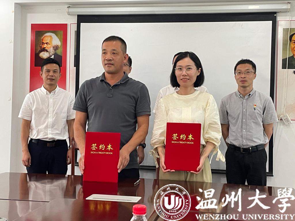 在签约双方领导及实践队队员的见证下,乐清市淡溪镇梅溪村党支部和吃瓜网