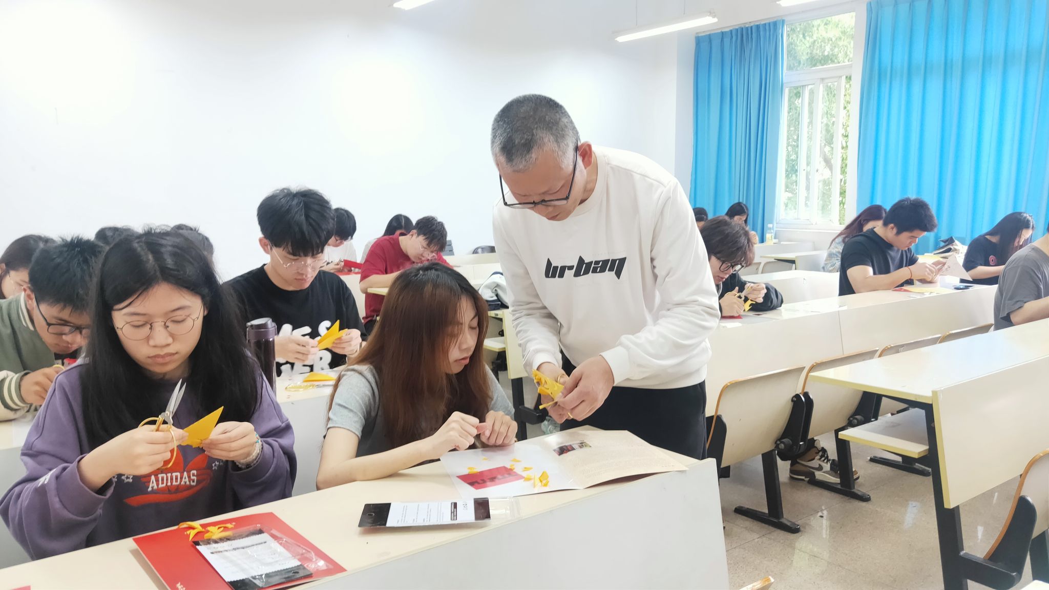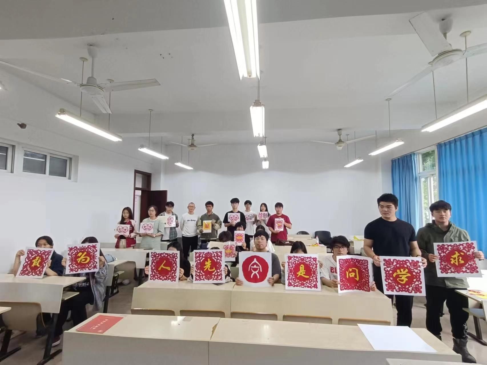 首先,周老师为师生们详细讲解了剪纸艺术的多种图案及南北剪纸的风格差异。他提到,北方剪纸风格注重大气、豪放,追求形似神似,而南方剪纸则更加细腻、精致,追求每一个细节的完美呈现。周老师的讲解,让师生们对剪纸艺术有了更深刻的认识和了解。