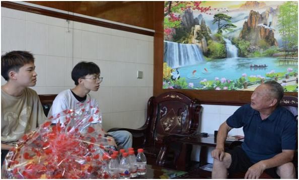 三大宣传方向——景点风光,历史文化,人物故事。每到一个地点,实践队都会认真记录下特色风光,了解其背后的历史文化。除此之外,实践队还寻找红色人物,了解其口中的红色故事。6月8日,实践队来到上望街道薛后村三代军人家庭陈奎法家中,对陈奎法老人进行采访。陈家一门三代戍国防的光荣事迹让实践队成员们倍受鼓舞,敬仰之情也油然而生。选择以人物故事为宣传载体,更有助于增强更多家庭的爱国拥军意识,赓续红色基因,汲取奋进力量。