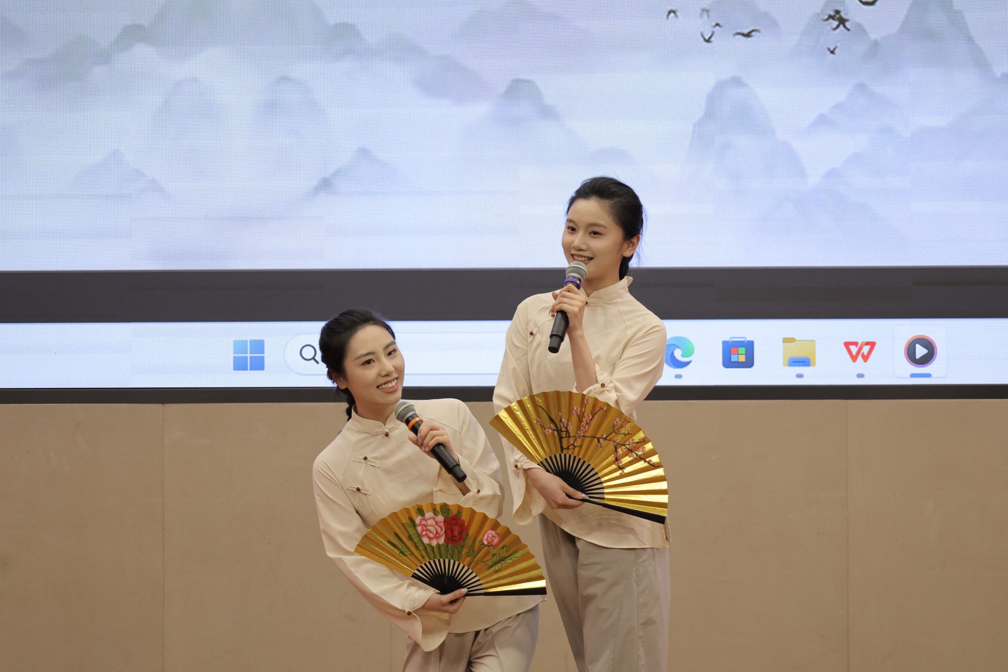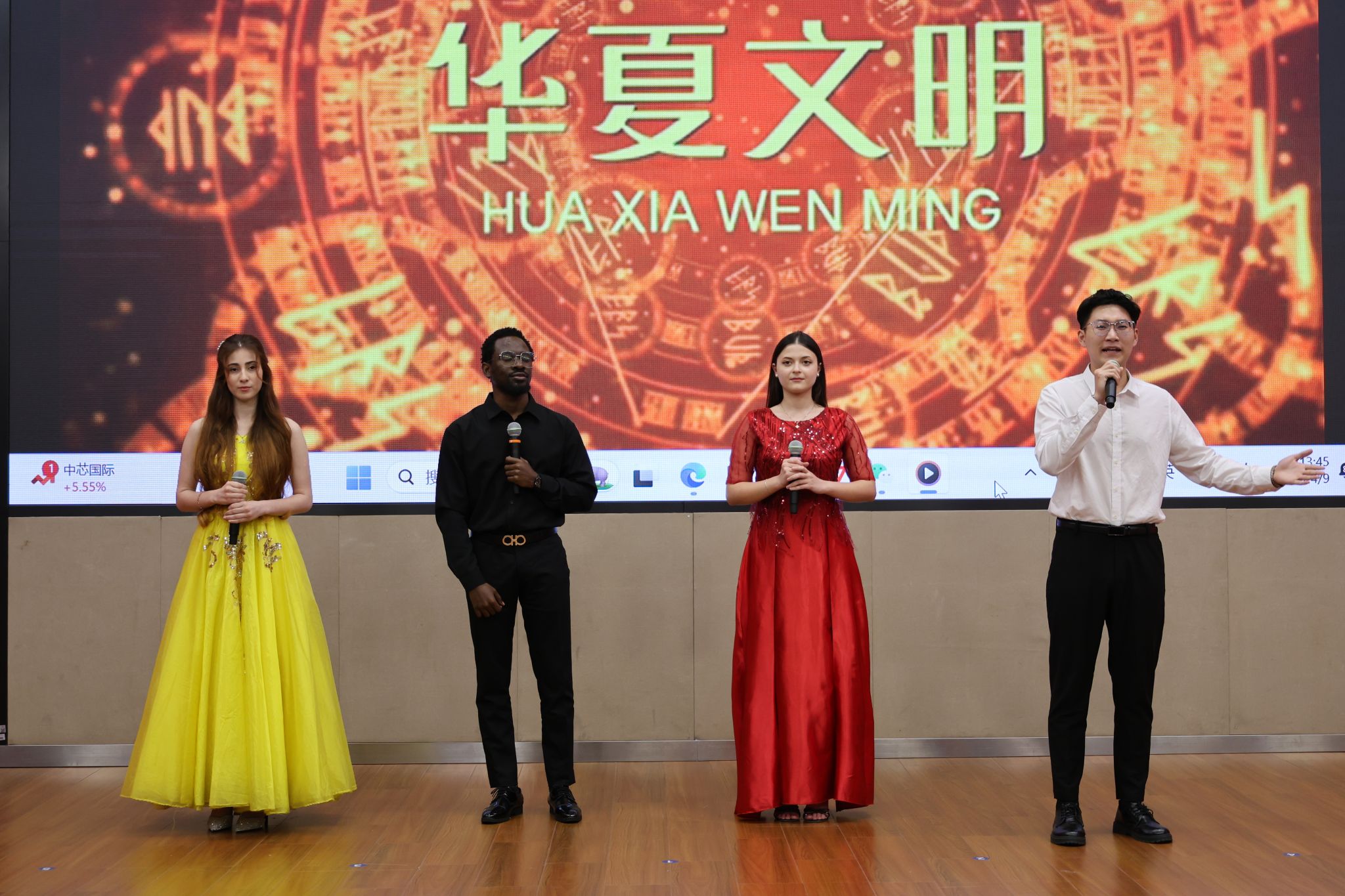 留学生们也毫不逊色。平上去入,抑扬顿挫,每一个发音都是一个高难的挑战;饱满的热情,深沉的情感,每一处演绎都是一次文化的体认。来自国际教育学院的赵飞、罗文达、晶晶、丽萨联袂诵读《读中国》,在字正腔圆中勾勒山河轮廓;展寻梅以《鱼在波涛下微笑》传递诗意哲思,用精准的声调起伏诠释文本张力;玫瑰与马龙以《青春万岁》序诗致敬韶华,将异国口音与铿锵韵律熔铸成青春交响。他们的参与不仅展示了我校国际中文教育的成果,也是以跨文化视角赋予经典新的生命力,这正是中外文明互鉴的生动实践。