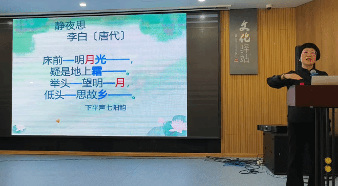 课前,学员们在班主任吴晓梦老师的引领下,齐声吟诵《静夜思》,为课程营造诗意的氛围。