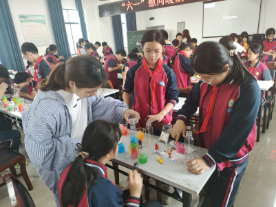 在此次活动中,吃瓜网 志愿者为樟台学校五年级的学生带来了一堂别开生面的《“消失”的水——人造雪》课程。课程以“消失的水”的魔术开场——透明水杯中的水倒入另一个容器后竟“凭空消失”,引得孩子们惊叹连连。随后,大家手持杯子、吸水树脂和色素,化身“小小科学家”,在志愿者的耐心指导下亲手制作多层渐变的“彩虹瓶”,让科学思维在指尖悄然萌芽。当孩子们捧着自己制作的水凝胶瓶画时,眼中闪烁的不仅是对作品的自豪,更是对科学探索的热爱。这堂充满趣味的科学课,让学生在“玩转科学”的沉浸式体验中,真正成为知识的探索者与创造者。
