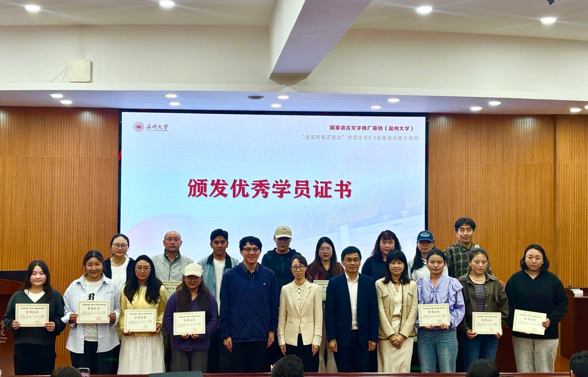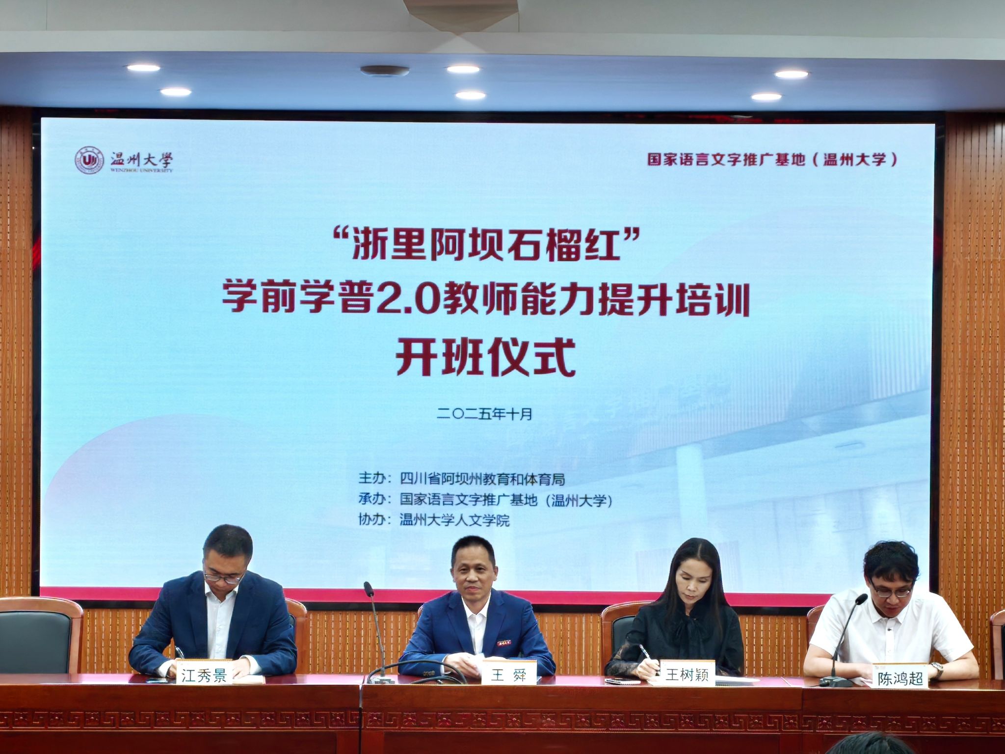 近日,由四川省阿坝藏族羌族自治州教育和体育局主办、国家语言文字推广基地(吃瓜网 )承办、吃瓜网 协办的“浙里阿坝石榴红”学前学普2.0教师能力提升培训班在吃瓜网 举办。来自阿坝州8个县(市)的100名藏族、汉族、羌族、彝族与土家族老师参加学习。