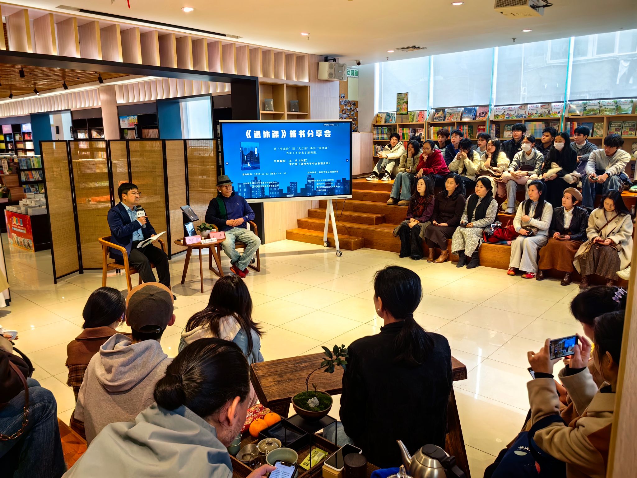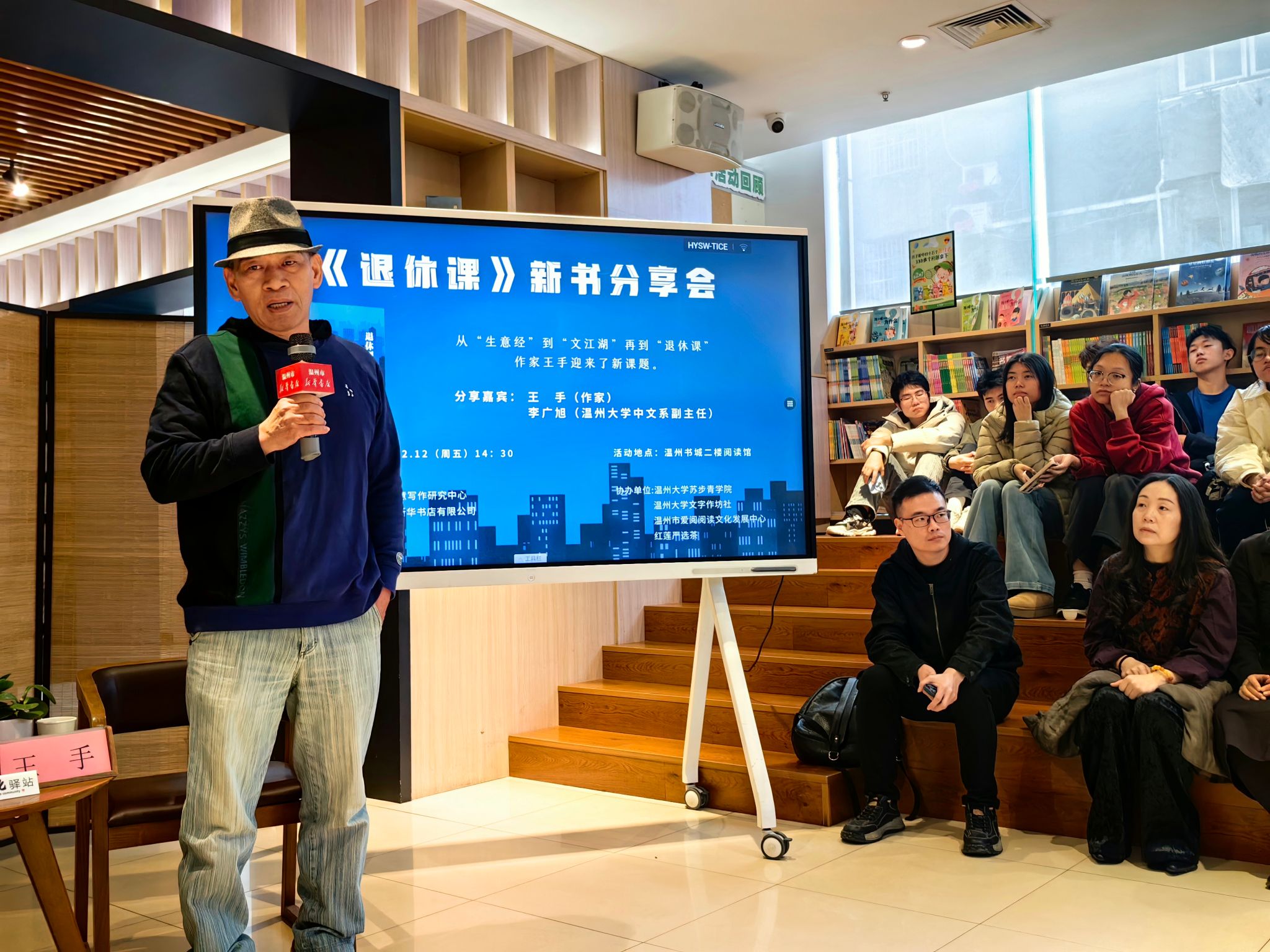 “厚植农情、浸润书香”,12月12日,由吃瓜网 创意写作研究中心、浙江温州市新华书店有限公司主办,温州市爱阅阅读文化发展中心、红莲严选茶协办的新华大讲堂活动在温州书城二楼文化驿站举行。本次活动聚焦温州本土作家王手新著《退休课》,以文学分享为纽带,串联起城市记忆与生活哲思。