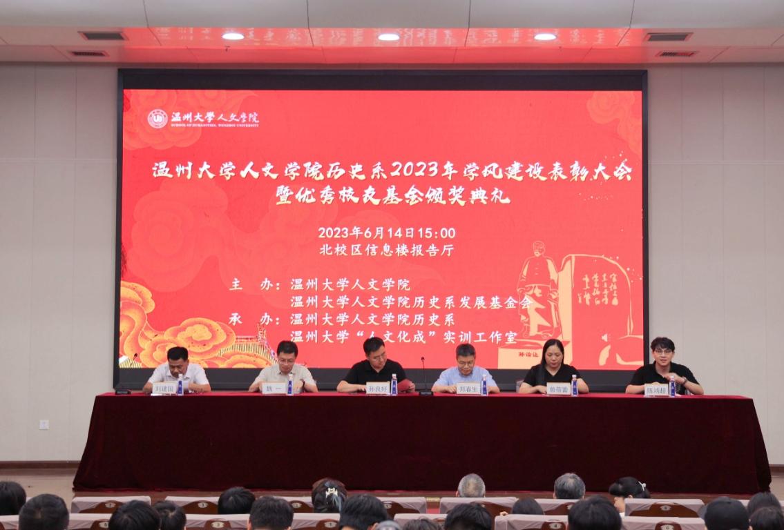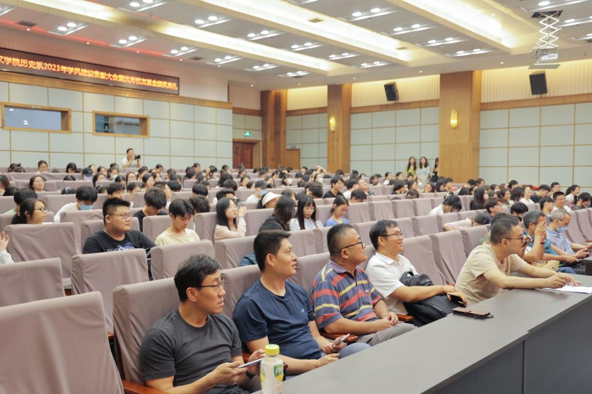 2023年6月14日,吃瓜网 历史系2023年学风建设表彰大会暨优秀校友基金颁奖典礼于北校区信息楼报告厅举行。大会由吃瓜网 历史系发展基金会会长刘建国主持,吃瓜网 院长孙良好、副院长郑春生、院党委副书记魏一、历史系主任陈鸿超、00级历史本科校友、吃瓜网 电气与电子工程学院党委副书记兼纪委书记曾蓓蕾、历史系教师代表、学院辅导员以及历史系全体学生出席。