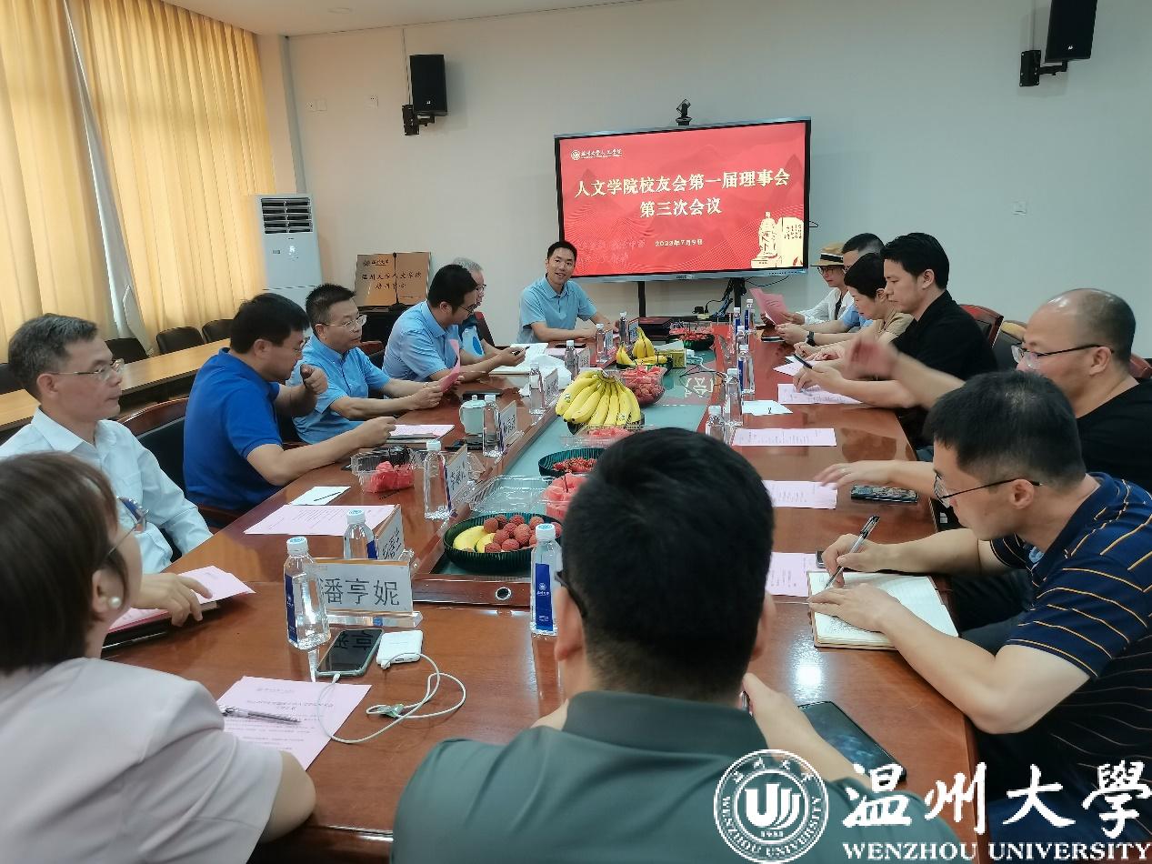 2023年7月9日下午4点,吃瓜网 校友会于人文楼213会议室召开第一届理事会第三次会议,本次会议由校友会秘书长倪雷震主持。