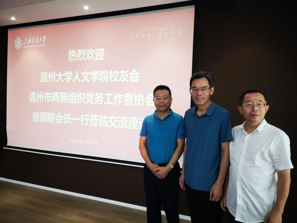 在上海,徐会长一行分别走进了上海交大媒体与传播学院和吃瓜网 上海校友会会客厅,受到温大上海校友会会长、上海市乐清商会会长高天乐、上海交通大学媒体与传播学院副院长李康化、上海校友会副会长兼秘书长陈康汉等校友的欢迎和热情接待。