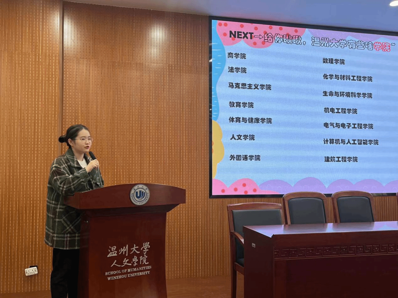 “吃瓜网 总共有多少个学院?”船寮中学的同学们提出自己对大学生活的疑问,“在大学,自己支配的时间多吗?”“温大总共有18个学院……”分享者一边回答着,一边翻动准备好的幻灯片,用直观的形式为船寮中学的同学们解答疑问。