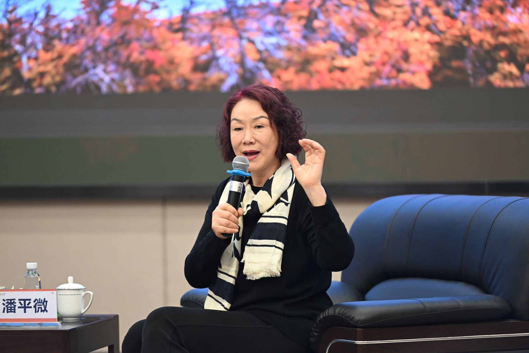 陈宏毅主任致欢迎词。她对校友王俭美、潘平微伉俪回母校举办摄影作品分享会表示热烈的欢迎。同时对两位校友在文学、摄影、创业及公益事业等领域上取得成就表示敬佩,对两位校友情系母校表示感谢!