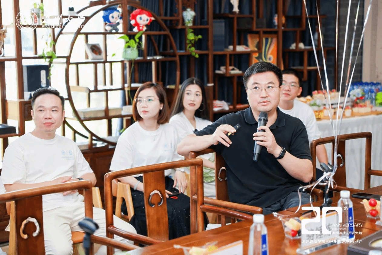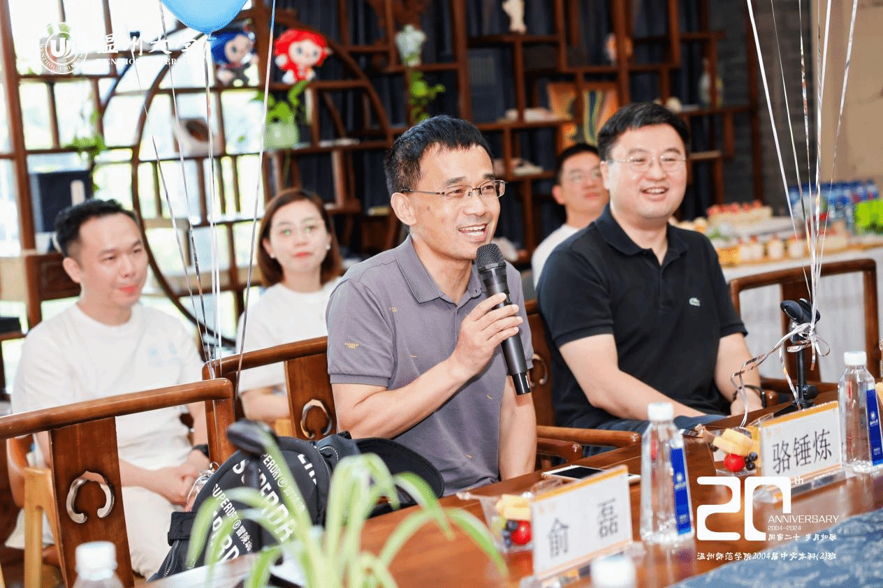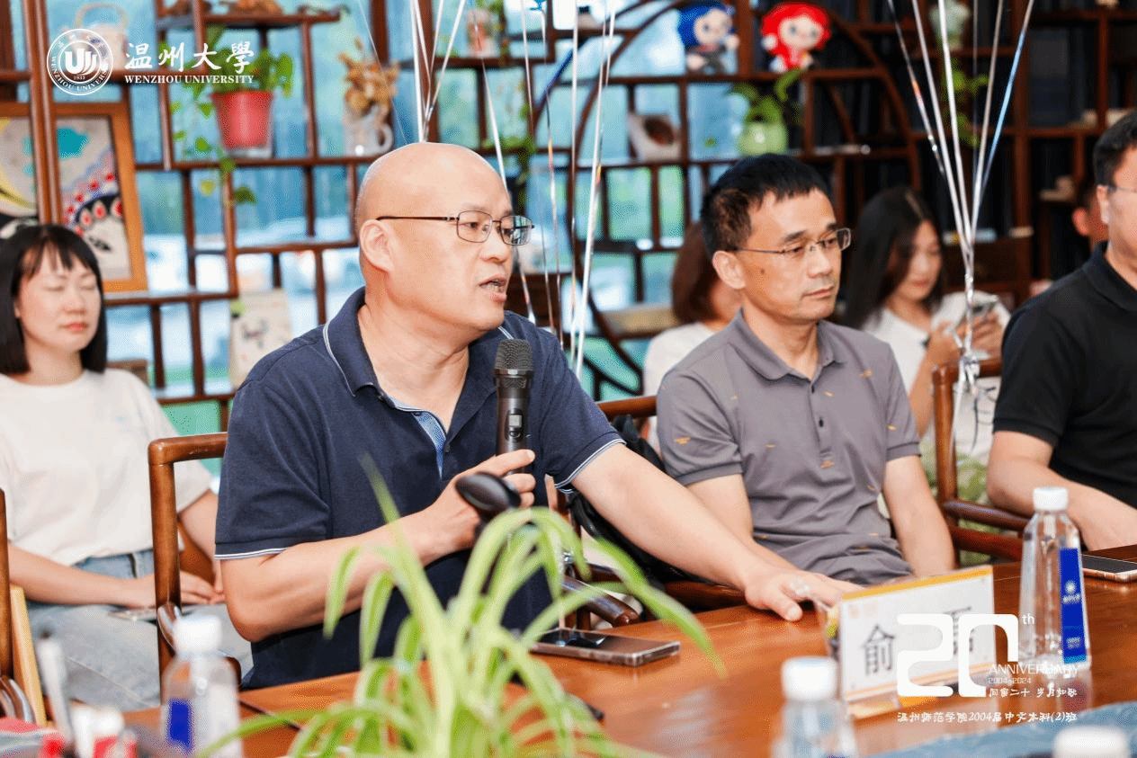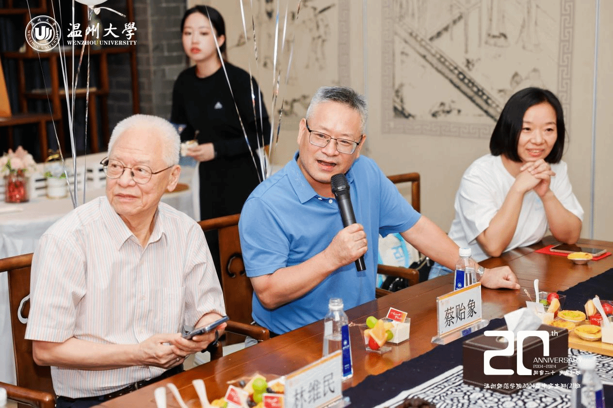 院长孙良好从师资队伍、专业建设、学科科研、人才培养等方面向校友介绍学校和学院的发展概况,详细阐述了学院在多个关键领域所取得的重要成果。校友们为学院建设的蓬勃发展感到欣喜与自豪。班主任骆锤炼以自身经历出发,娓娓道来,同各位校友分享近况。俞磊老师从写作教学的角度出发,为各位校友在写作教学方面提出宝贵建议。金理新老师提出,人应当活在当下,找到正确的位置,愉快地去生活。蔡贻象老师就美学在实际中的运用这一话题与校友们展开交流,分享了美学目前在旅游等领域的运用。林维民老师分享自己热爱体育与游览山水的志趣,呈现健康向上的生活态度,与同学们共勉。
