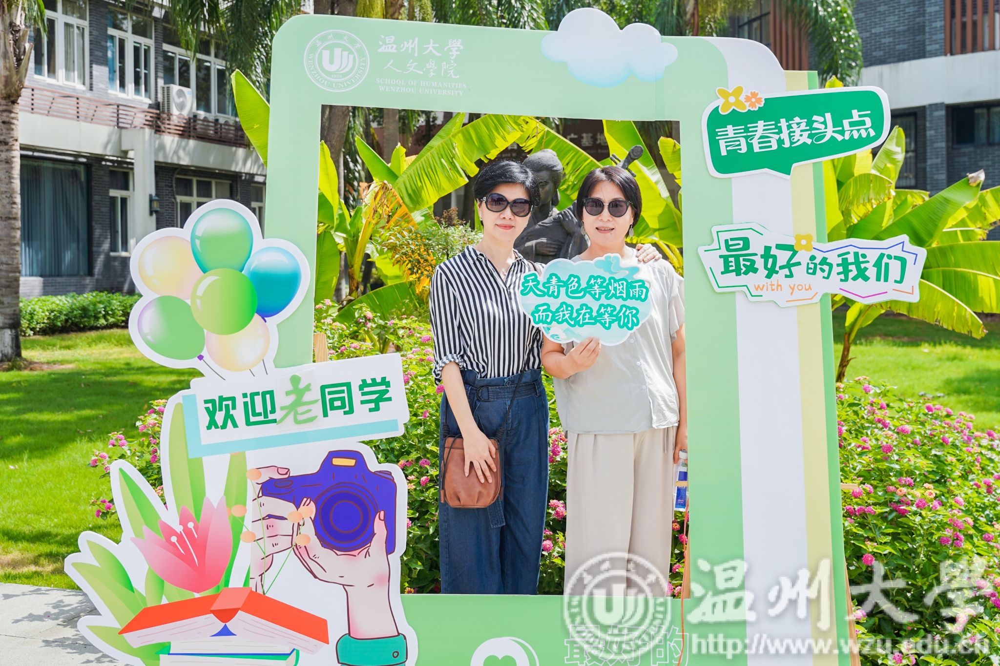 当天上午,校友们首先来到了浙江传统戏曲研究与传承中心。“天青色等烟雨,而我在等你”。校友们纷纷合影留念,用镜头定格跨越岁月的重逢与温情。离别悠悠三十载春秋,当再次踏入母校的怀抱,校友们的脸上绽放出明媚与喜悦。