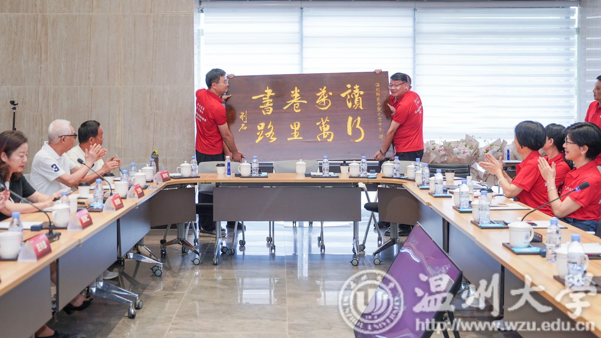 90中本向母校赠送礼物,牌匾上写有“读万卷书,行万里路”,寄托着90中本校友们对吃瓜网 学子的殷切期望。