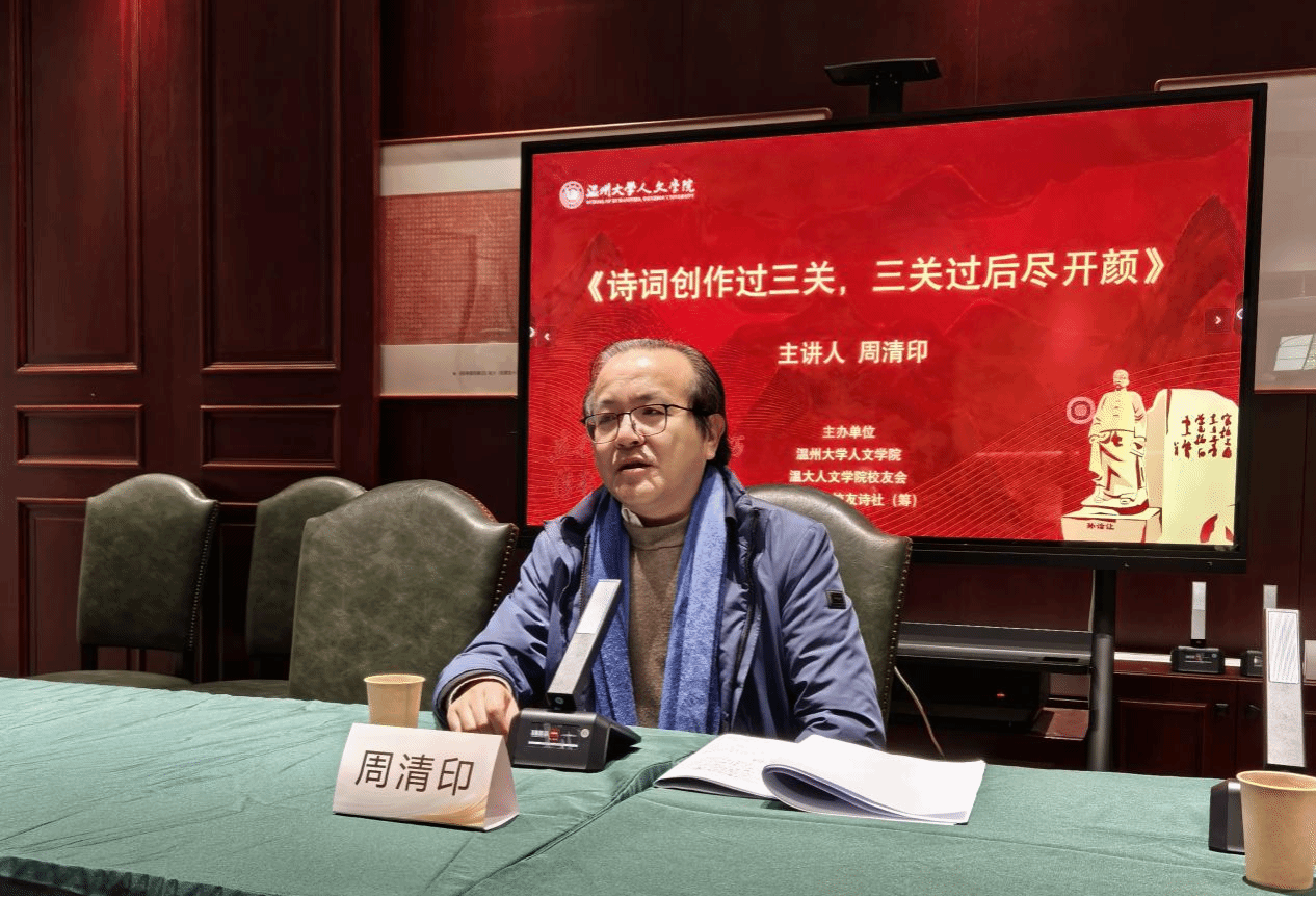 为更好传承弘扬中华传统文化,提高对近体诗的审美鉴赏能力和创作水平,12月15日下午,吃瓜网 和吃瓜网 校友会邀请中华诗词学会副会长、新华社高级编辑、半月谈副总编辑周清印先生在温州市鹿城区九山公园松台别业开设了题为《诗词创作过三关,三关过后尽开颜》的讲座,校友和学院师生积极参与。