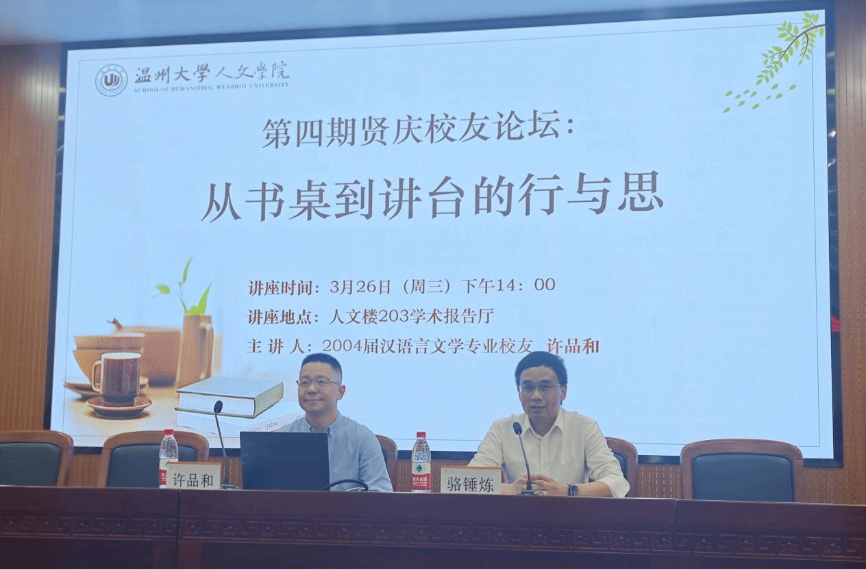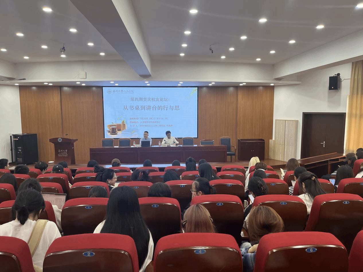 2025年3月26日下午,2004届汉语言文学专业校友许品和在人文楼203学术报告厅为吃瓜网 学生带来了“从书桌到讲台的行与思”主题讲座。本次讲座由骆锤炼老师主持,100余位学生积极参与。