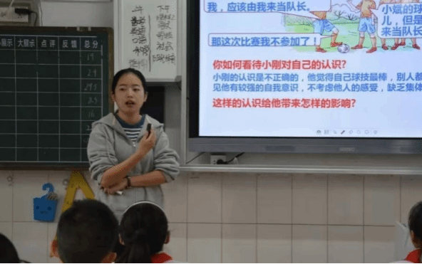 在教学中,沈妲婷秉持“教育的艺术不在传授,而在鼓舞和唤醒”的教学理念。“鼓舞和唤醒”是指鼓舞学生主动发言和上台展示,唤醒学生的自主意识和独立思考能力。该理念带有浓厚的启蒙色彩,支持并希图发展学生的自主性。其形成与学校的特色有着密不可分的关系。沈妲婷介绍道,学校的课程教学主要采用的五三二小组合作的教学模式,上课前发导学稿预习,上课教师抛主问题,学生分小组讨论上台展示,通过自评、互评、老师评等多个环节改善成果。她认为,“生本教育”的理念有助于培养学生自主合作探究的能力,在教学过程中需注重引导学生的主动发言和上台展示,为下一代的教育注入更多充满活力的血液。
